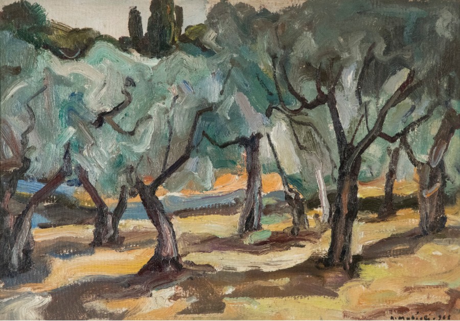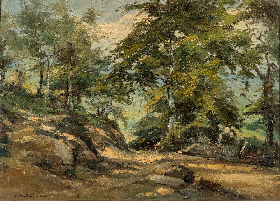 “Strati e castagni”, olio su compensato, cm. 33×47, 1946