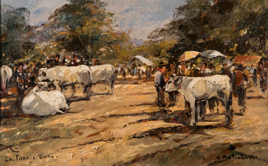 “La fiera a Vicchio”, olio su legno, cm. 30×50, 1946