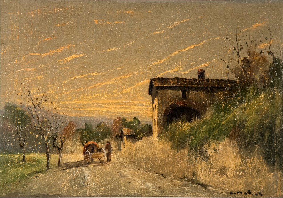 “Mugello al tramonto”, olio su legno, cm. 35×50, 1944