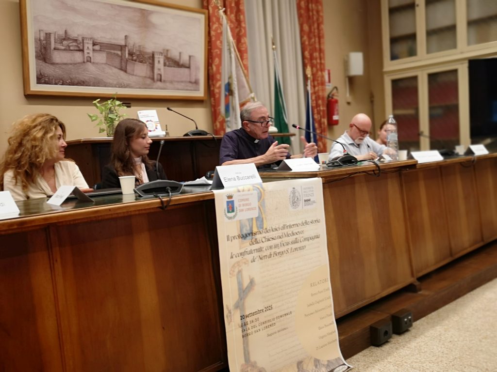 BORGO SAN LORENZO – Si è svolto sabato scorso 20 settembre, nella prestigiosa sala del Consiglio Comunale del Municipio di Borgo San Lorenzo, il convegno su “Il protagonismo dei laici all’interno della storia della Chiesa nel Medioevo: le confraternite, con un focus sulla Compagnia de’ Neri di Borgo San Lorenzo”. I numerosi interventi, coordinati dai docenti del Dipartimento di Storia, Archeologia, Geografia, Arte e Spettacolo dell’Università degli Studi di Firenze hanno tracciato il quadro di alcuni particolari aspetti della vita medievale, anche in relazione al territorio fiorentino e mugellano, affrontando il fenomeno dei movimenti laici a sfondo religioso.