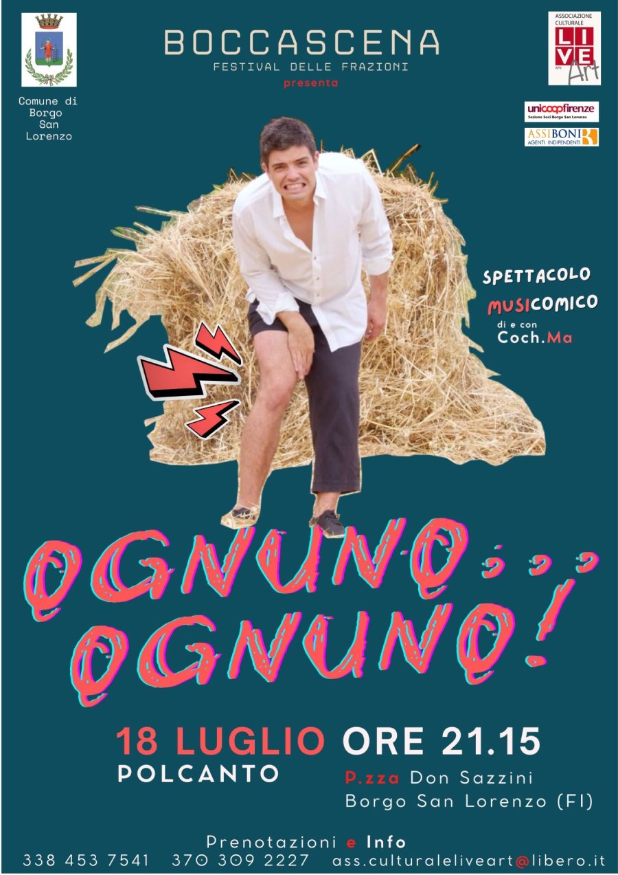 BORGO SAN LORENZO – Continua a Borgo San Lorenzo “Boccascena, il festival delle frazioni”. Venerdì 18 Luglio alle 21.15 in piazza don Sazzini a Polcanto, per il “Memorial Roberto Nazio” si terrà “Ognuno…ognuno”, spettacolo musicomico di Coch. MA. Questa la trama dello spettacolo: il giovane Damiano è la pecora nera dei Longhi. Sogna una vita diversa dai suoi, di fare il cantante, mentre in famiglia sono tutti disc di professione. Il vecchio capofamiglia, nonno di Damiano, si è stancato di avere un fannullone per casa. Vuole che il nipote, come gli altri, aiuti a tirare avanti la baracca e cerca modi assurdi per far ottenere al giovane la preziosa certificazione di disabilità.