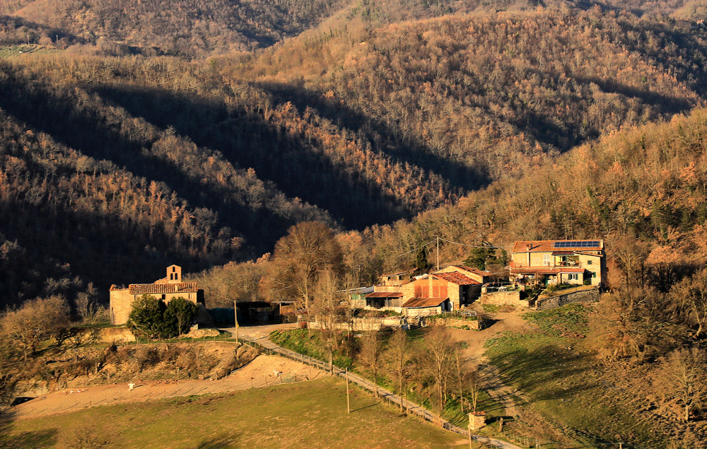 Superato il podere di Gello e quello di Toiano, la stradella si trova a percorrere una sorta di stretto crinale sopraelevato che regala scorci incantevoli sulla zona del Forteto da un lato e sull’area appenninica dall’altro.