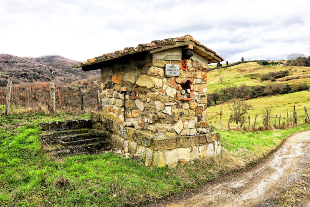 La strada segue un contesto agreste di rara bellezza paesaggistica, forse il più suggestivo e integro dell’intera campagna di Vicchio.