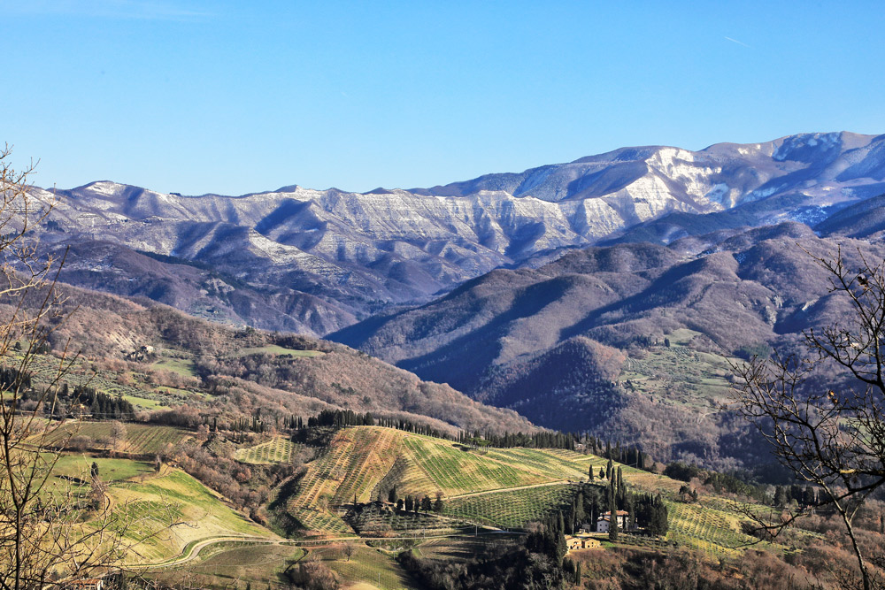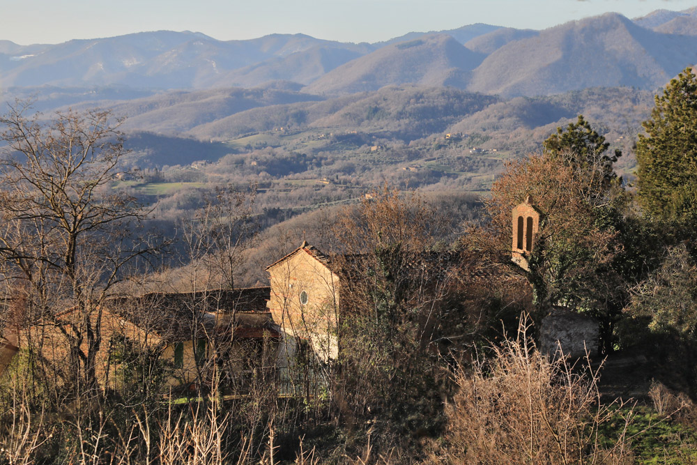 Da qui lo sguardo può spaziare su splendidi paesaggi del Mugello e in particolare sull’Appennino di Villore chiuso a est dal grandioso scenario del Falterona.