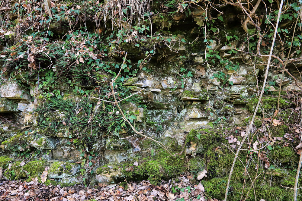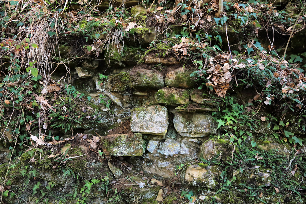 Purtroppo queste strutture, in alcuni punti con elevato prossimo ai due metri, si mostrano quasi completamente occluse da detriti e terreno in naturale scivolamento, tanto da rendere incomprensibile il loro scopo originale che poteva avere funzione di cintura esterna ma anche terrapieno di sostegno alla viabilità.
