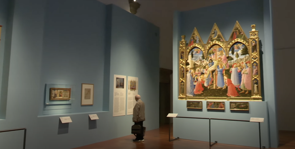 Sotto il profilo cronologico e filologico il percorso attraverso le opere in esposizione inizia nella sede del Museo di San Marco, antico convento domenicano, e prosegue nella sede di Palazzo Strozzi dove sono invece presenti alcuni tra i più importanti capolavori del Beato Angelico che illustrano la sua influenza sull’arte rinascimentale