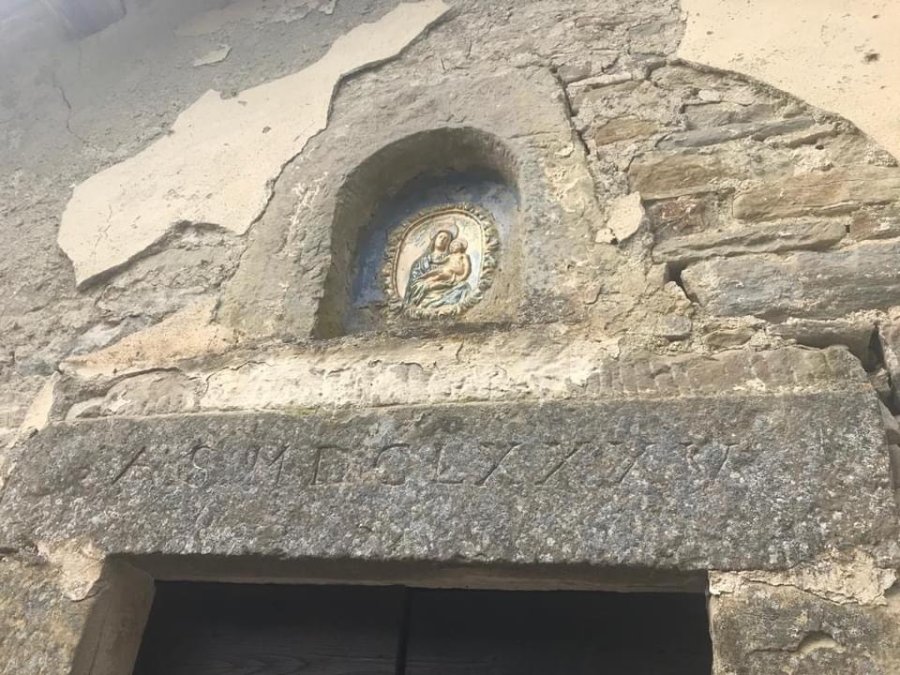 Sulla facciata è allocata una maiolica, probabilmente settecentesca, che raffigura la Madonna del Bosco di Alfonsine, assai diffusa nella zona di Firenzuola.