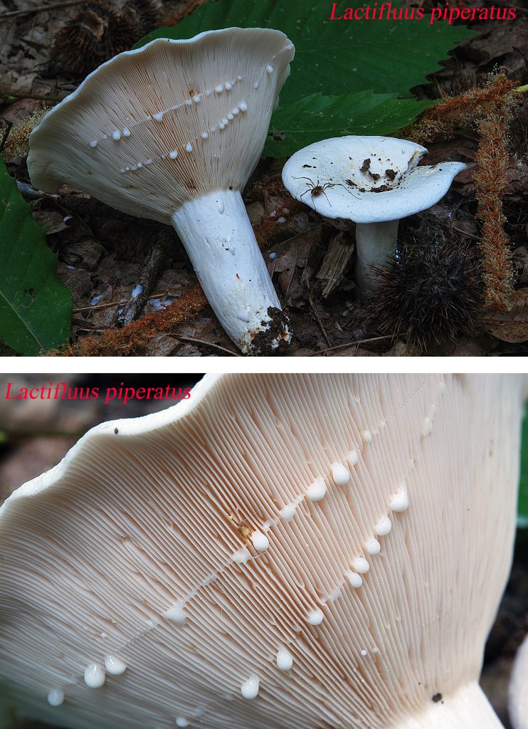 D’altra parte, sempre nel Meridione, vengono utilizzati altri lattari (facilmente reperibili anche in Mugello), stavolta dichiaratamente e storicamente riconosciuti come tossici, ma consumati dopo averli trattati previa “spurgatura”: prebolliti e poi cucinati con preparazioni a lunga cottura. Una prassi che, almeno in parte, potrebbe attenuare la pericolosità delle tossine presenti ma sicuramente senza debellarle del tutto in quanto tossine termostabili. Vengono ad esempio così preparati sia Lactarius vellereus che Lactarius piperatus (attualmente e più correttamente facenti parte del genere Lactifluus; sì perché anche l’ampio genere Lactarius, dai primi anni 2000 e in seguito ad analisi filogenetiche e molecolari è stato in parte sfoltito ed alcune sue “storiche” specie sono state trasferite nel vicino genere Lactifluus). Addirittura il Lactifluus piperatus (che, come suggerisce l’epiteto specifico, piperatus, è di sapore molto acre e piccante) viene da alcuni essiccato per essere poi ridotto in polvere e utilizzato al posto del pepe o del peperoncino. In ogni caso si tratta di procedure che portano spesso al ricovero ospedaliero…