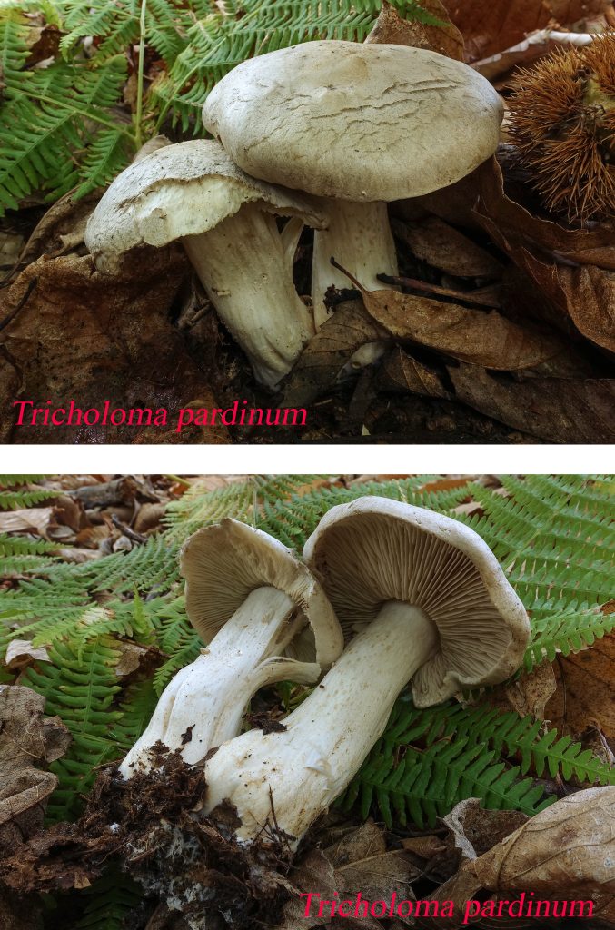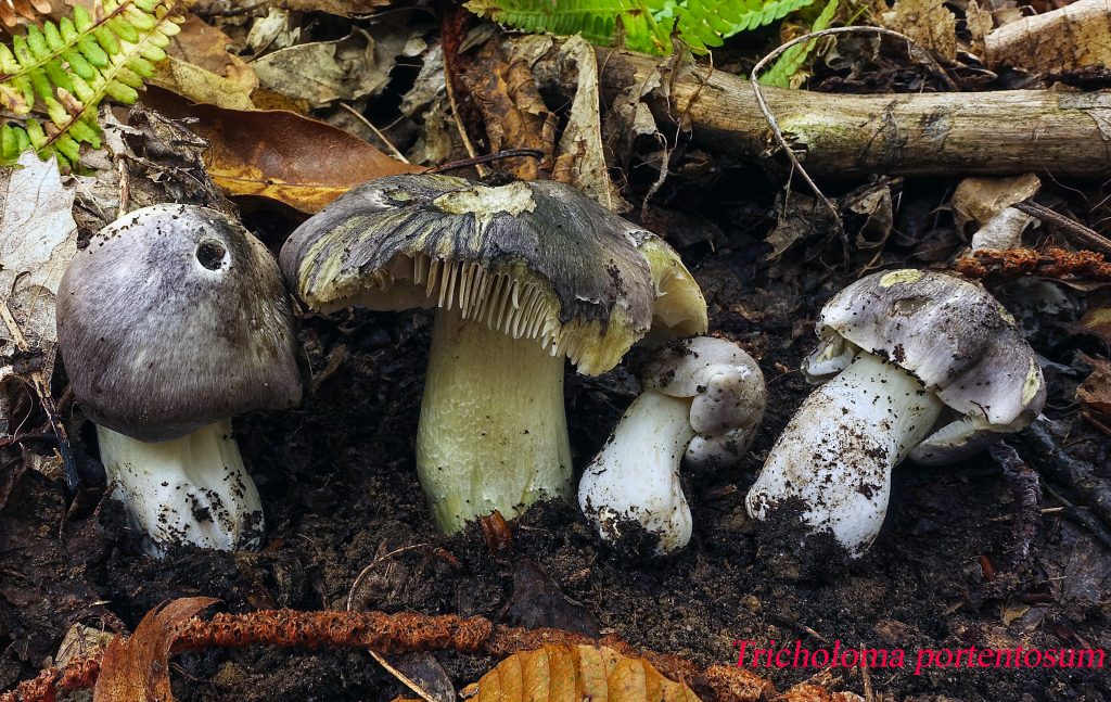 Talvolta le sfumature cromatiche su cappello, gambo e lamelle non sono così evidenti e allora il “portentoso” può essere confuso (dai fungaioli non accorti) con Tricholoma grigiastri tra cui qualcuno molto pericoloso. Eccone un breve elenco (per chi volesse avere qualche dettaglio in più può cliccare sul nome della specie, scritto in rosso, per attivare il link che apre alcune pagine dell’Archivio A.M.I.N.T. con le notizie a riguardo): Tricholoma pardinum (il più tossico tra quelli qui elencati; anch’esso può avere odore farinaceo anche se non sempre gradevole, tuttavia ha cappello non fibrilloso ma per lo più grossolanamente squamettato), Tricholoma josserandii (carne di odore e sapore rancidi, come di “cimice”), Tricholoma virgatum (carne dall’odore un po’ rafanoide e sapore amaro e poi piccante), Tricholoma sciodes (odore erbaceo-terroso, sapore amarognolo-acre), Tricholoma saponaceum (dal tipico odore, come suggerisce l’epiteto specifico, di acqua saponata, sapone di Marsiglia, scarico di lavatrice, ecc.)