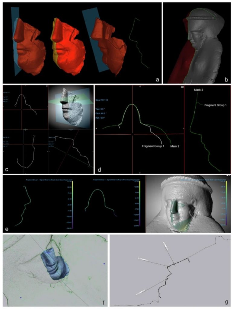 Al centro dello studio vi sono maschere funerarie dell’Egitto greco-romano, spesso prive di un contesto archeologico chiaro. Utilizzando analisi tridimensionali estremamente precise, il team ha confrontato la geometria delle superfici dei reperti. Questo confronto ha permesso di scoprire che alcune maschere furono prodotte con lo stesso stampo, rivelando l’esistenza di processi di produzione seriale all’interno di specifiche botteghe artigiane.
