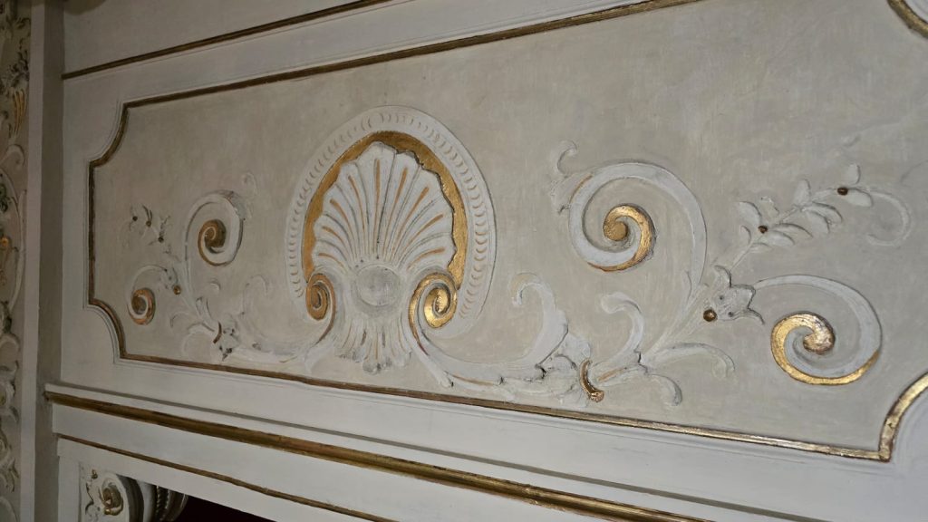 Intonaci dipinti a secco e stucchi decorativi di palchetti laterali al palco e arco di boccascena seguiranno le fasi di seguito descritte: