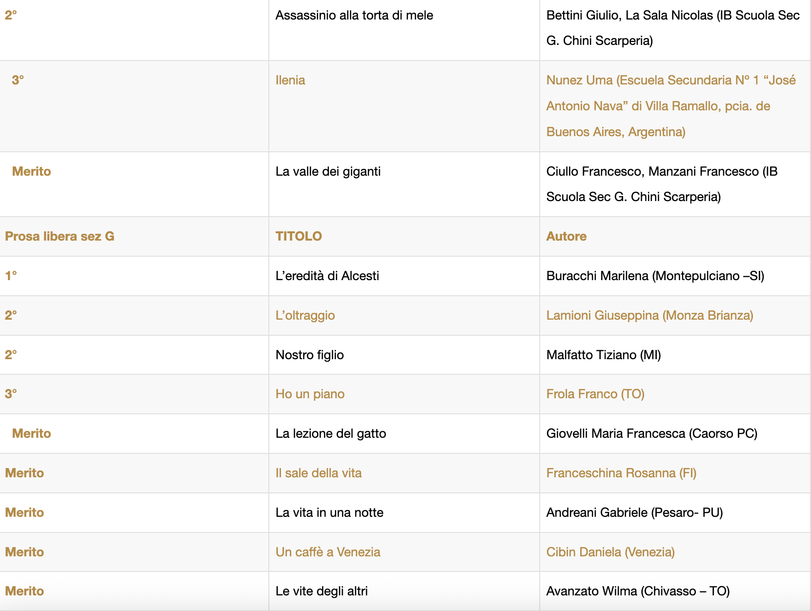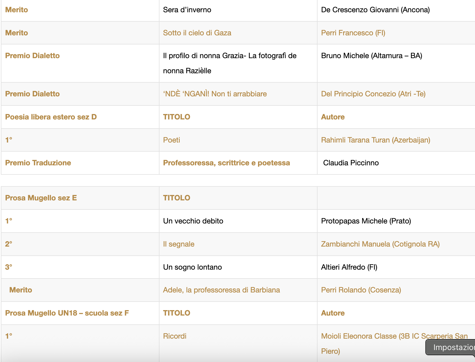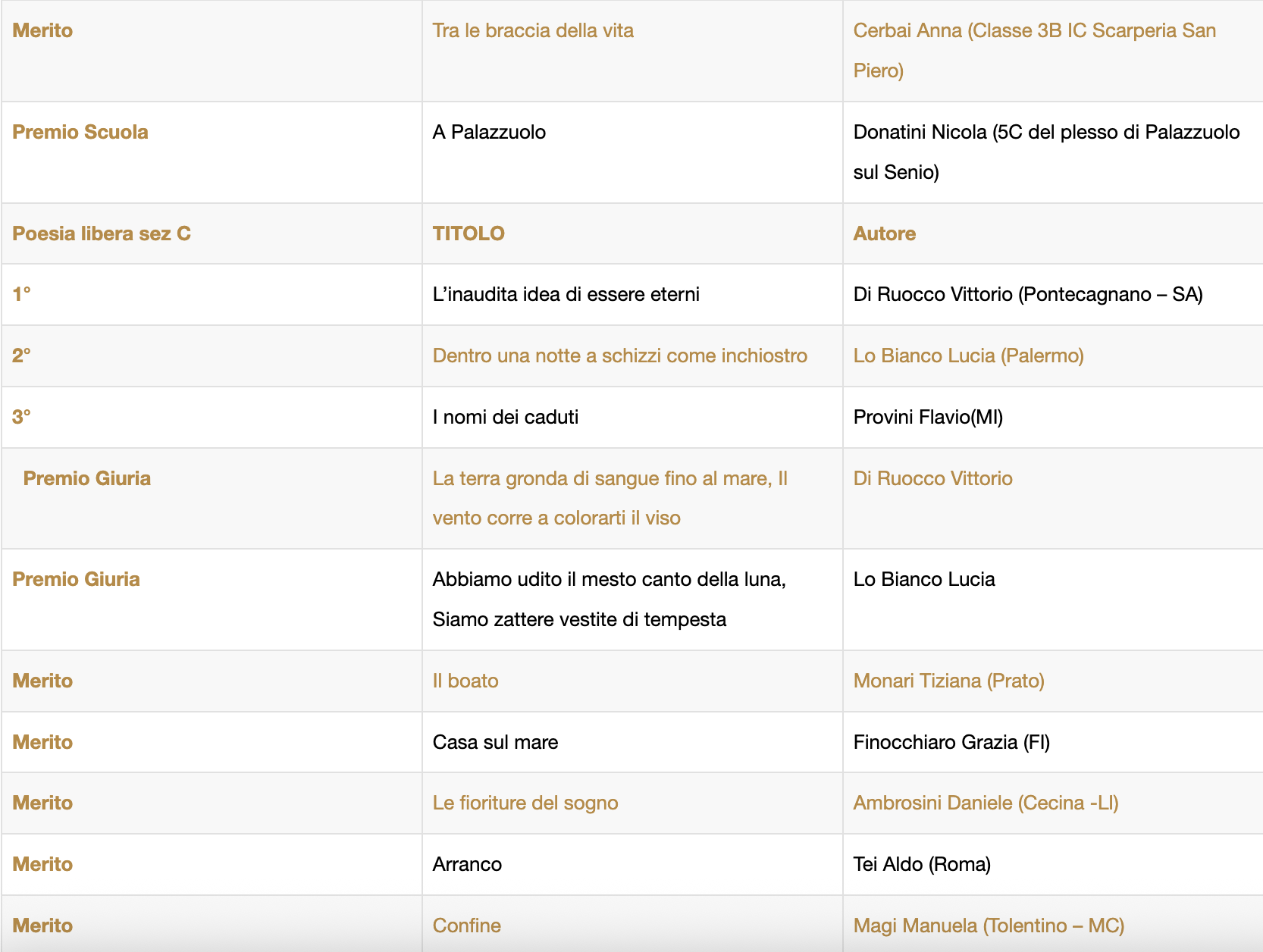 Altri riconoscimenti significativi sono andati alla Prof.ssa Claudia Piccinno per la miglior traduzione e agli autori Bruno Michele e Del Principio Concezio per le migliori opere in dialetto.